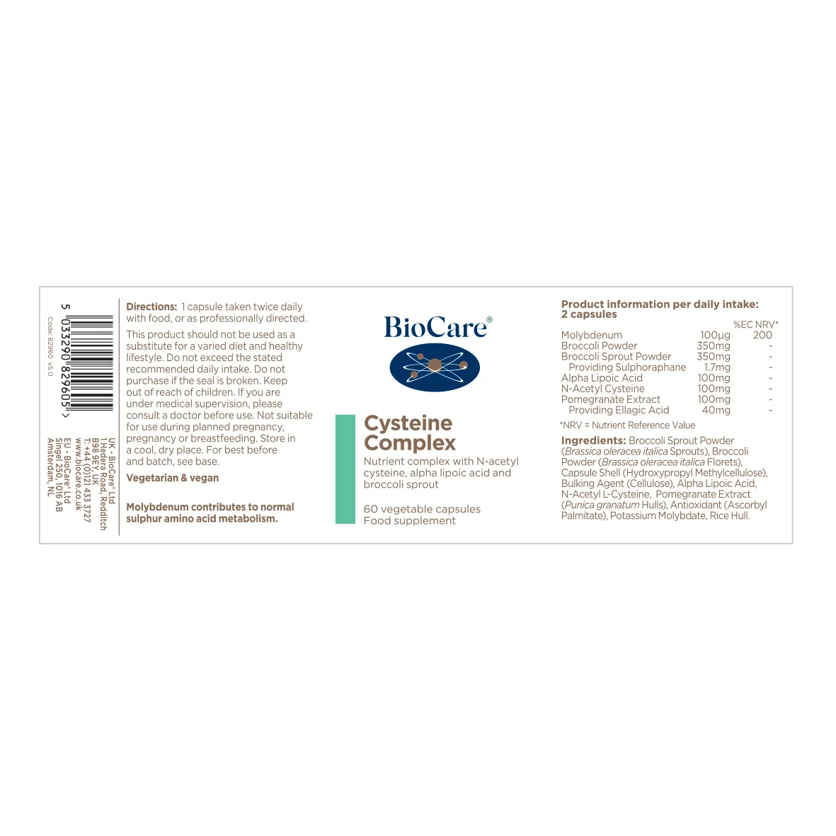Kompleksi i cysteinës është një kombinim unik i lëndëve ushqyese të fuqishme duke përfshirë N-acetil cisteinë, acidin alfa lipoik dhe filizin e brokolit. Ofron një sërë lëndësh ushqyese dhe ekstrakte bimore të zgjedhura posaçërisht për mbështetjen e proçesit të detoksifikimit.