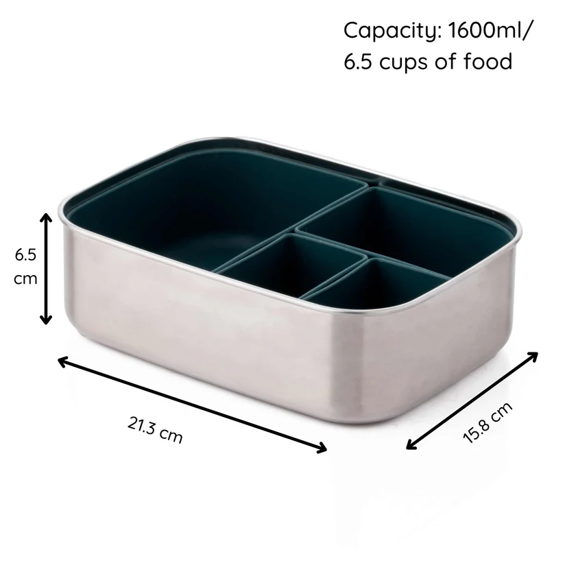 Large Stainless Steel Dinosaur Lunchbox with 4 Organisers