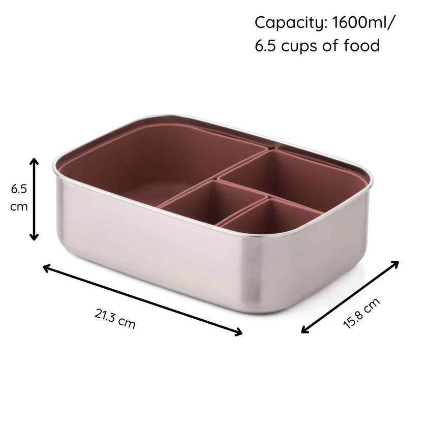 Kuti prej çeliku Inoks me kapak silikoni “eco rascals” – një kuti për vakte ushqimore, miqësore me mjedisin, e krijuar për të përmbushur nevojat e familjeve moderne. E krijuar me materiale premium dhe dizajn të mirëmenduar, kjo kuti drekë është e përkryer për fëmijët dhe të rriturit, duke siguruar qëndrueshmëri dhe funksionalitet për përdorim të përditshëm.