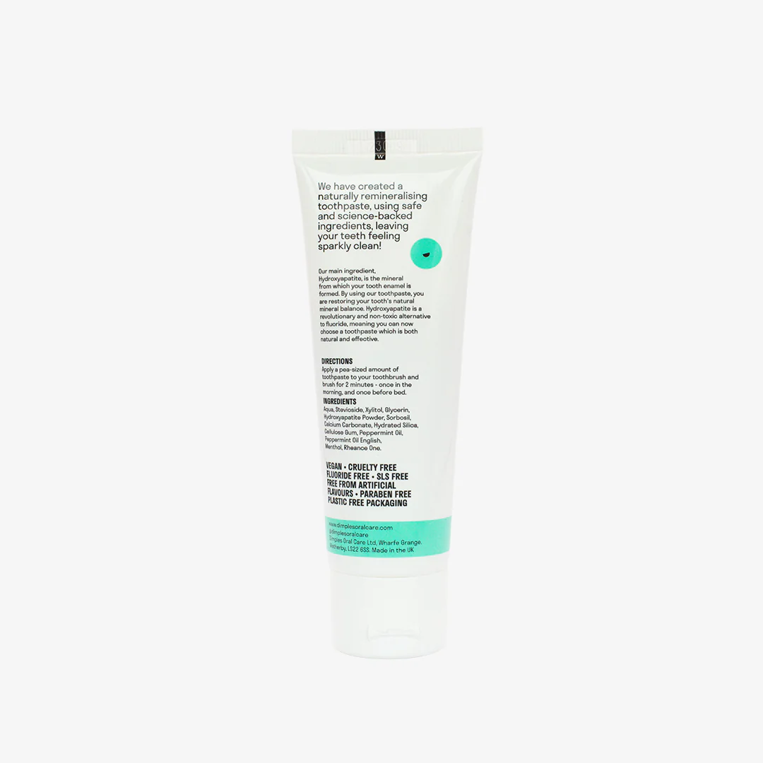 - Pasta e dhëmbëve Dimples Oral Care është projektuar për të rimineralizuar natyrshëm dhëmbët tuaj, duke i lënë ata të pastër dhe të freskët.
