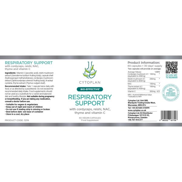 Një kompleks sinergjik unik me rigon, kordiceps, reishi, NAC dhe vitaminë C për mbështetje të synuar të mushkërive, duke promovuar indin e shëndetshëm të mushkërive, oksigjenimin dhe funksionin imunitar.