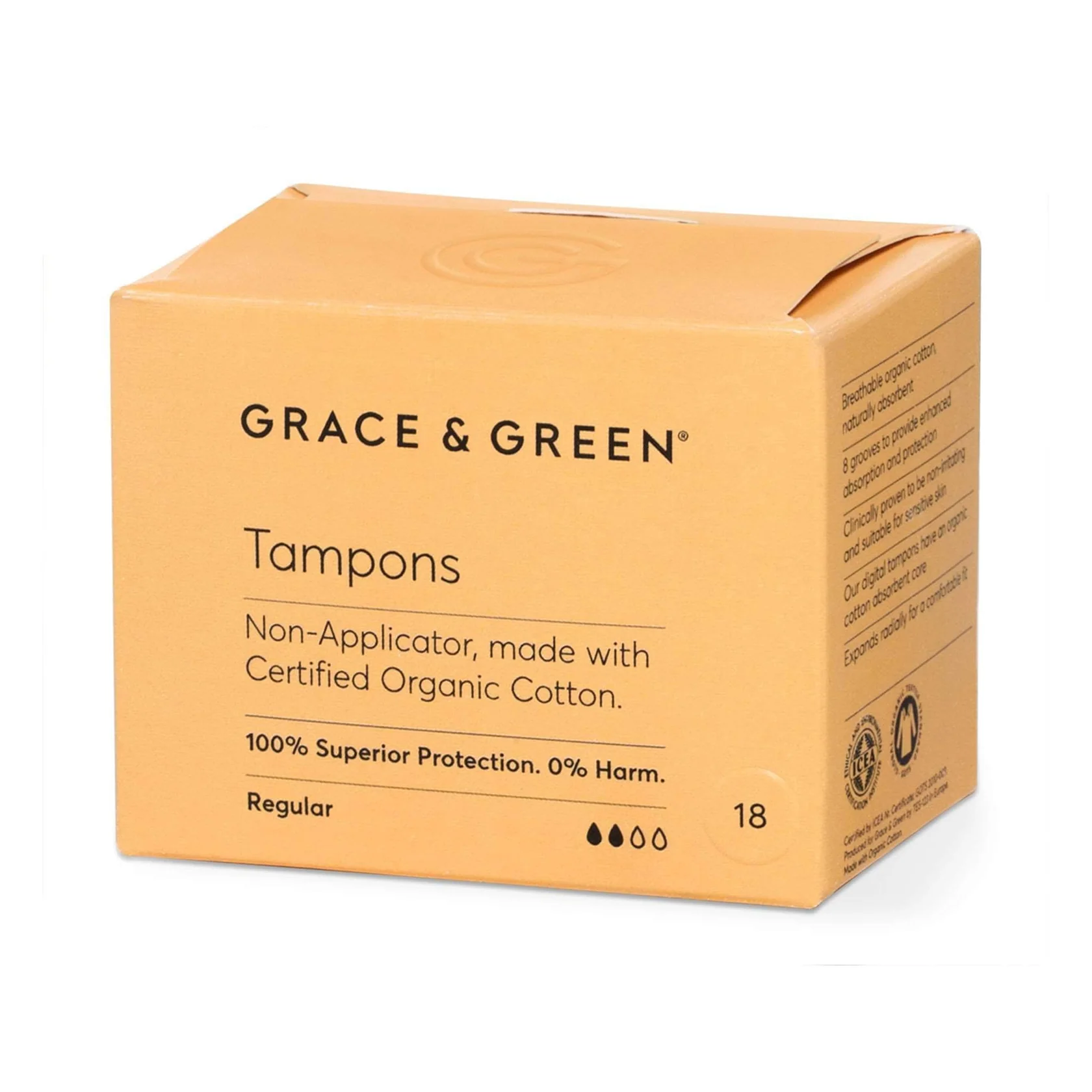 Tampona organikë të mbështjellë me letër të riciklueshme. Krijuar vetëm me përbërës natyral dhe të qëndrueshëm.